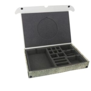 Combi BOX with 100mm deep raster foam tray and foam tray for 55 small miniatures on 25mm bases