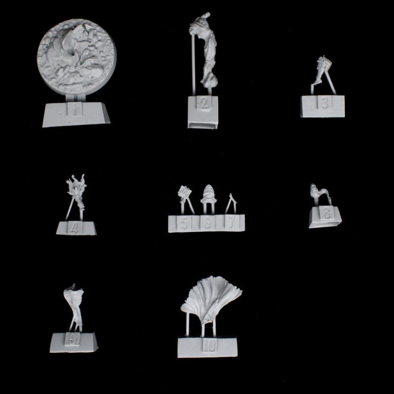 Contents: Resin Bastian (10 parts), 2 Resin Tokens (Heroism, Time Bender) Material: pure, unfilled resinModel is unassembled and unpainted. Intended for ages 14+.When assembling, only use cyanoacrylate glue (medium viscosity, for best results) as other glues may damage the material.