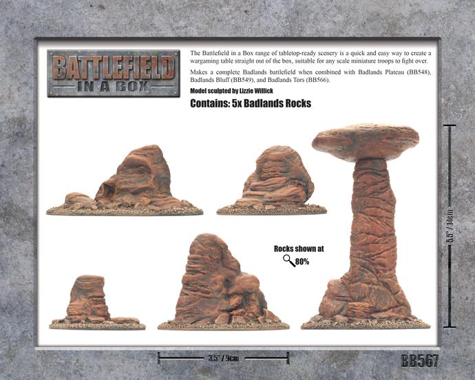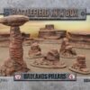 Centuries of erosion by wind and water have carved stunning stone monuments out of the clay-rich earth of the Badlands. Large flat-topped plateaus and bluffs tower across the landscape, granting commanding views to those who scale their towering heights. Clumps of eroded rocks dot the stark region providing cover to advancing units or concealing dangers from unsuspecting victims.