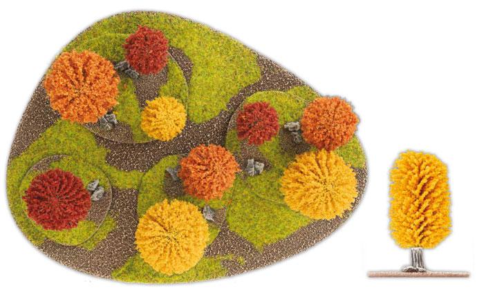 nine small Autumn Trees, two Triple Tree Stands, one Single Tree Stand,