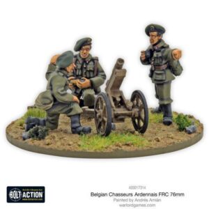The Chasseurs Ardennais were Belgium’s elite force, and their primary role was to defend the Ardennes Forest. The Chasseurs Ardennais section consists of 12 men. A section was led by a Sergeant carrying either an MP-28 submachine gun or Fusil 1889 rifle. The FM1930 BAR was the standard section LMG, which was carried and operated by one man. The remaining nine riflemen carried the Fusil 1889 rifle, one of which is a dedicated rifle grenadier carrying a rifle adapted to shoot grenades.