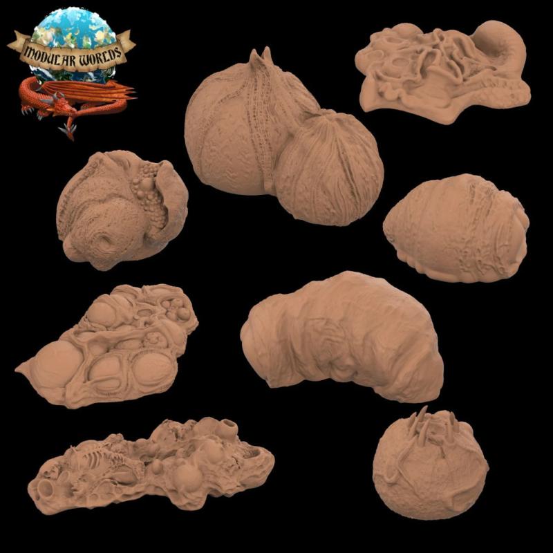 These 8 x Pieces of Bio Terrain suited to 28-32mm tabletop miniature games. 3D printed in resin, these miniatures are ready for painting straight out of the box.