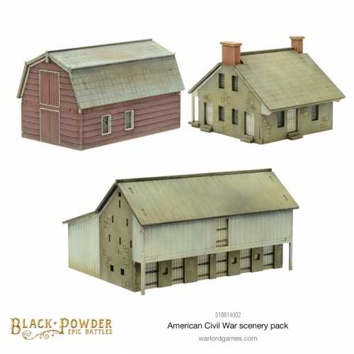 This pack is designed to lend your Epic Battles: American Civil War campaigns with a little extra tabletop authenticity. Included are two houses typical of the period as well as a Dutch Style Barn, largely located in the American Midwest – less than 600 examples are estimated to still be standing today.