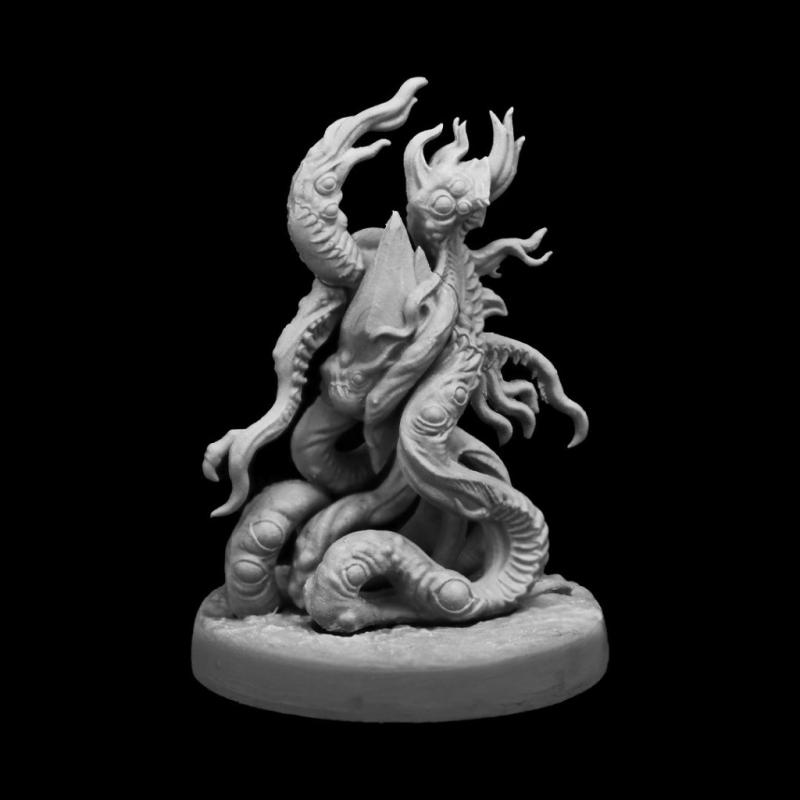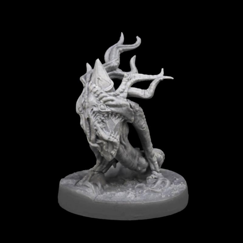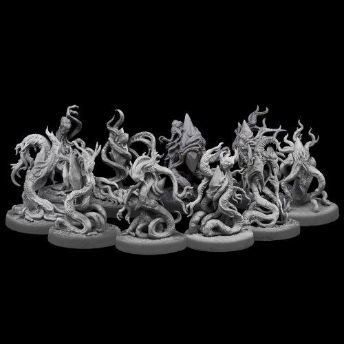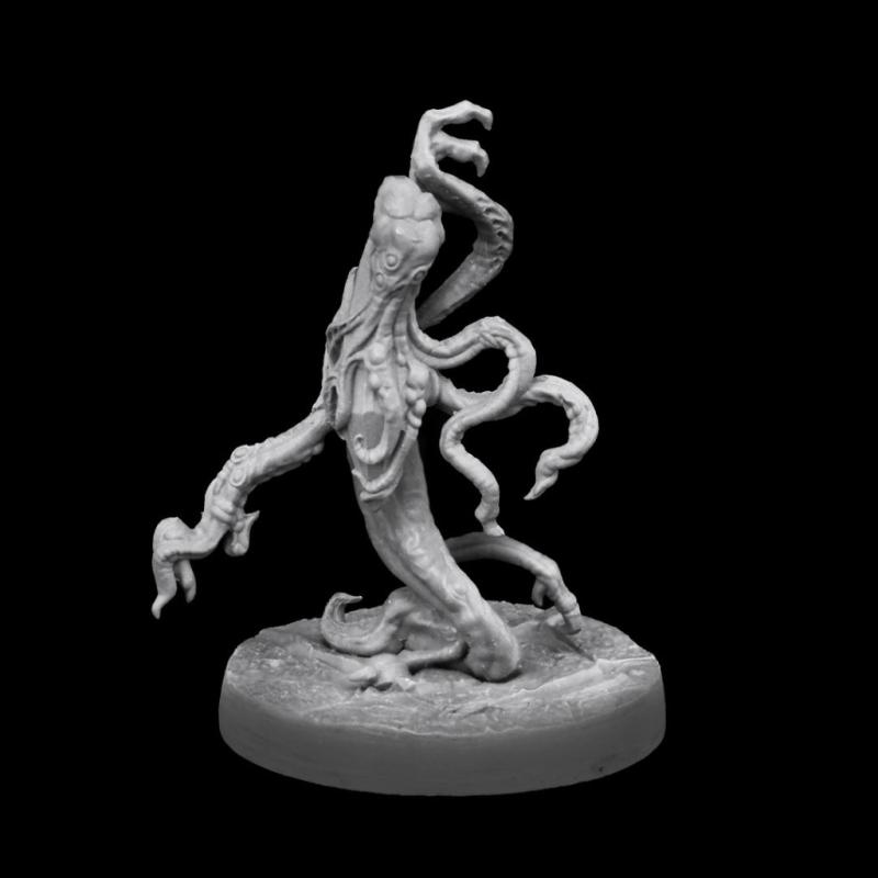 Ugul Hul – the demon god of the Yhtari of Malifica – is present everywhere. Like a titanic jellyfish lying on the deep ocean floor the god is constantly replicating itself. Its monstrous body writhes with countless tendrils, each one feeding on the surrounding ocean ley lines, growing in energy and mass, before releasing a polyp that floats off into the depths.These polyps are the starting point for every Yhtari of Malifica that has ever existed. At first bound to the water the polyps grow in size, morphing in form almost uncontrollably. It is only when a polyp encounters one of the crystal formations that cover the ocean bottom that they gain a glimmer of sentience, and the ability to stabilize their changing bodies.Eventually they emerge from the depths, twisted and hideous, little more than a tentacle clutching onto a glowing energy crystal. No one suspects that these primitive and nearly mindless creatures are fragments of perhaps the most powerful and malevolent of the demon gods.At first these Children of Malifca find themselves under the control of their more powerful brethren. Instinctually the Lords and Ladies, or Kings and Queens of Malifica blend their minds with that of the Children, taking control of them like additional limbs. As part of this hive mind the Children of Malfica have no real will of their own.The Children move like a fluid mass, writhing and squirming across the battlefield under the guidance of the hive mind. They can bring down enemies physically, swarming over them and dragging them down into a seething mass of tentacles and teeth. More commonly they fight at range, releasing destructive blasts of energy from the crystals that they have formed a symbiotic relationship with.Over time the Children of Malifica can increase in sentience, gaining more control over their forms, and absorbing more energy into their crystals. Occasionally they develop a will and a purpose of their own – the Yhtari of Malifica call this an awakening. Once awakened the Child of Malifica expends almost all of the energy it has managed to store in its crystal, morphing and changing form to become an Atriarch of Malifica. Those that survive the transition to an Atriarch have nearly unlimited potential – each one a piece of their god with the capacity to evolve into the various ranks of Malifica Royalty, or perhaps even into gods themselves…
