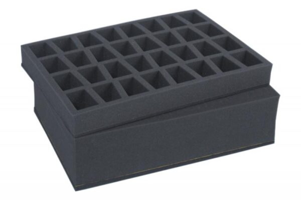 Combi BOX with 100mm deep raster foam tray and foam tray for 32 miniatures on 40mm bases