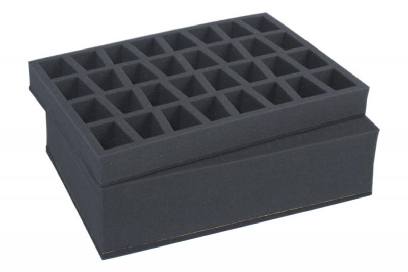 / Combi BOX with 100mm deep raster foam tray and foam tray for 32 miniatures on 40mm bases