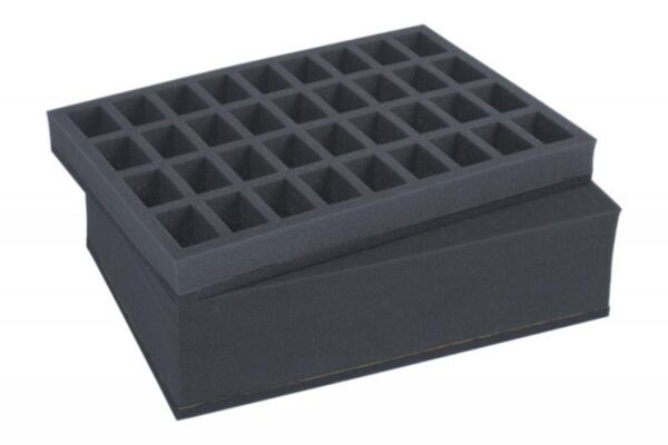 Combi BOX with 100mm deep raster foam tray and foam tray for 36 miniatures on 32mm bases
