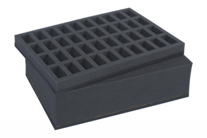 Combi BOX with 100mm deep raster foam tray and foam tray for 40 miniatures on 25mm bases