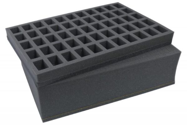 Combi BOX with 100mm deep raster foam tray and foam tray for 55 small miniatures on 25mm bases