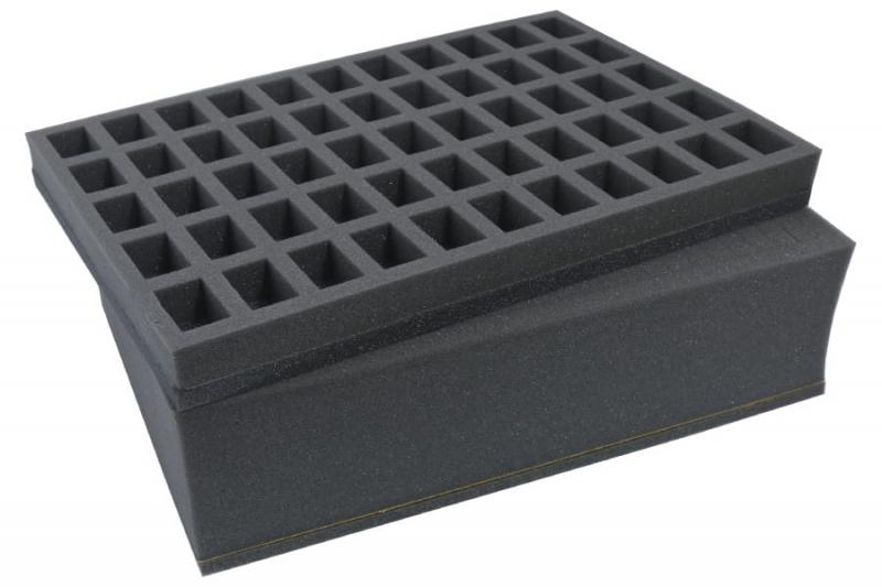 / Combi BOX with 100mm deep raster foam tray and foam tray for 55 small miniatures on 25mm bases