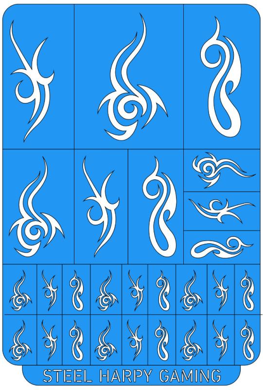 Removable Airbrush & Painting stencils created using high quality British made self-adhesive flexible vinyl. Designed to be used across a variety of mediums but primarily designed for use in tabletop wargaming model and terrain painting.