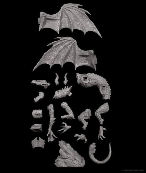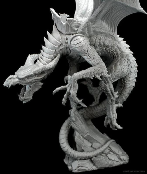 Emperor Dragon is cast in pure, unfilled, resin. He comes with a howdah, allowing you to use your own miniatures to represent the rider. Alternatively, he can be modeled with a saddle, or with a riderless option. The recess on his back can accommodate a 20mm by 20mm base.