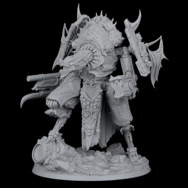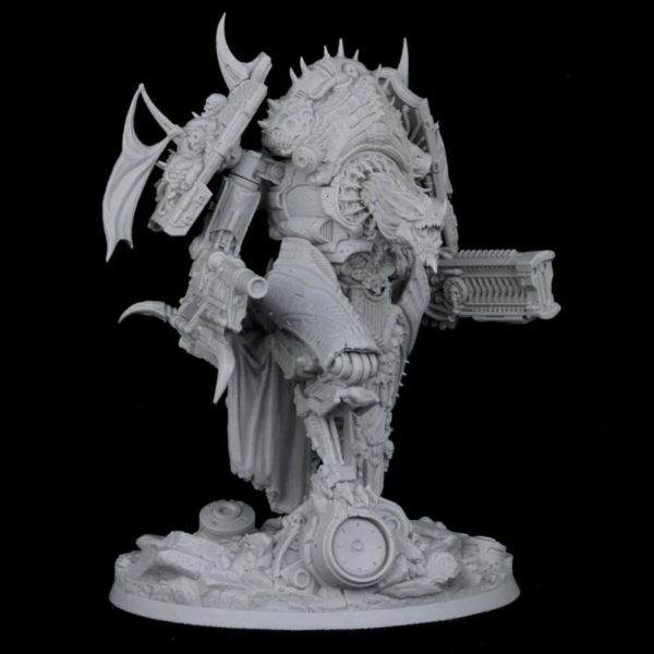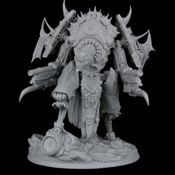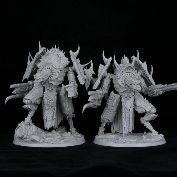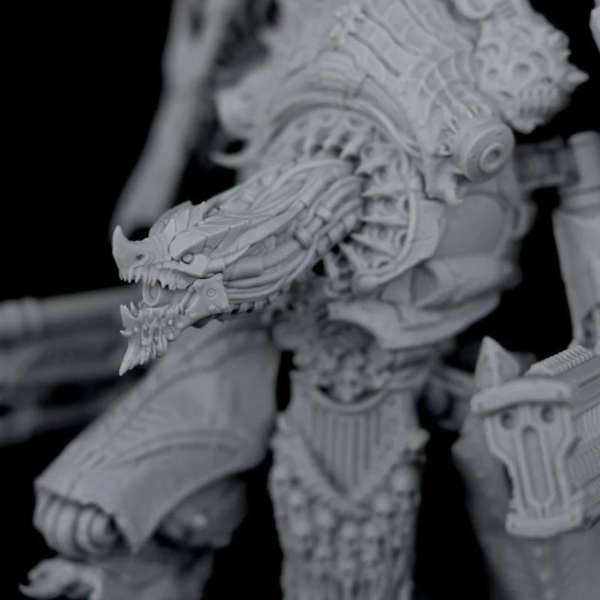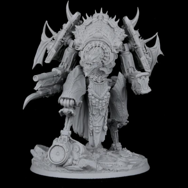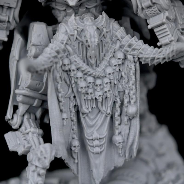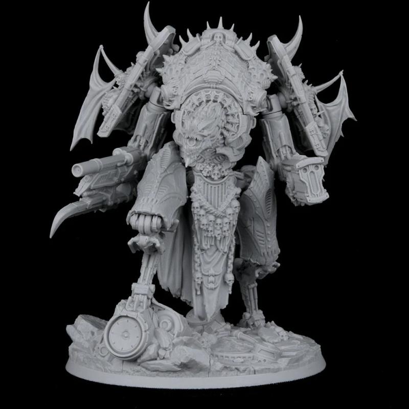The Corpse-Bearer is an Engine of Annihilation variant that mounts the bodies of its foes on its massive pauldrons, striking terror in even the fiercest enemy. Their sleek frames are designed to compact their silhouette, making them a harder target to hit on the battlefield. Striking from afar, their energy weapons and cascading explosive rounds leave devastating gaps in enemy lines.