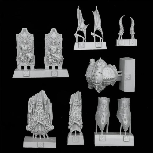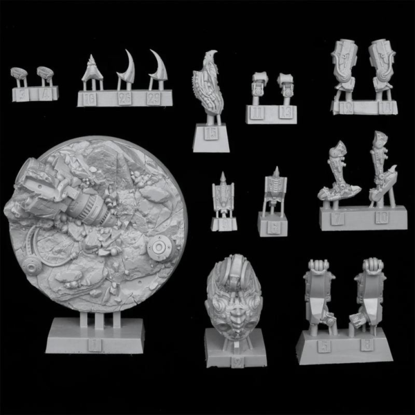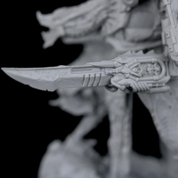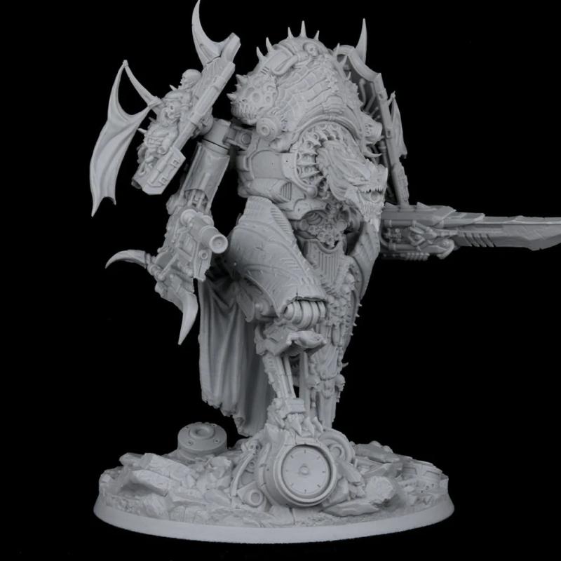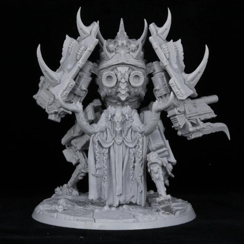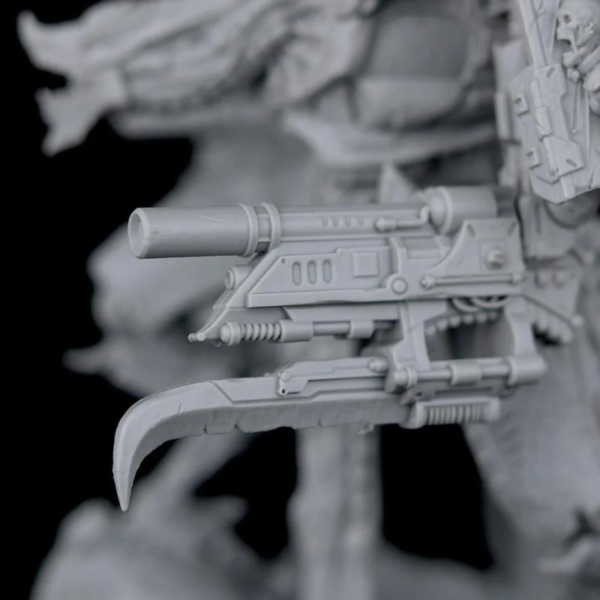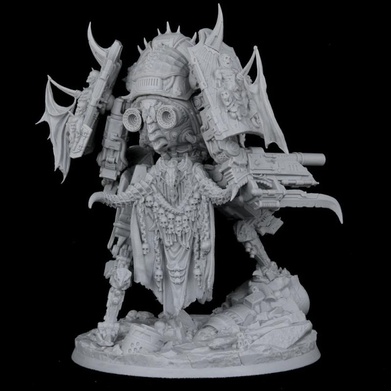 The Corpse-Bearer is an Engine of Annihilation variant that mounts the bodies of its foes on its massive pauldrons, striking terror in even the fiercest enemy. Their sleek frames are designed to compact their silhouette, making them a harder target to hit on the battlefield. Striking from afar, their energy weapons and cascading explosive rounds leave devastating gaps in enemy lines.