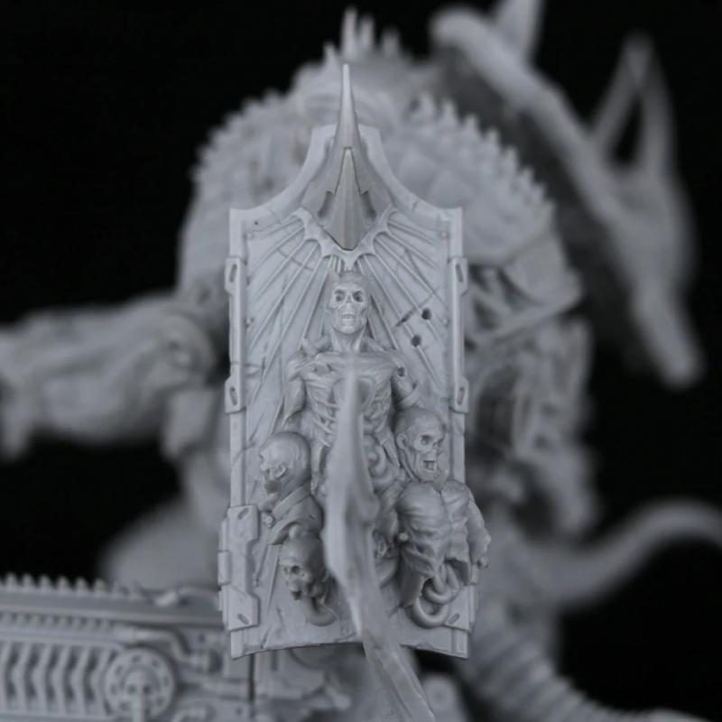 The Gorebrand variant Engine of Annihilation celebrates the glory of battle by engaging directly with the enemy. While its Corpse-Bearer counterpart delivers suppressive fire from the rear, the Gorebrand uses its massive girth and heavy blades to eviscerate its foes. Its deadly blows grind mortal flesh to pulp and pulverize even the sturdiest bones. Armed with razor sharp pauldrons and spiked armour, it crashes into the melee revelling in the mayhem of its design.