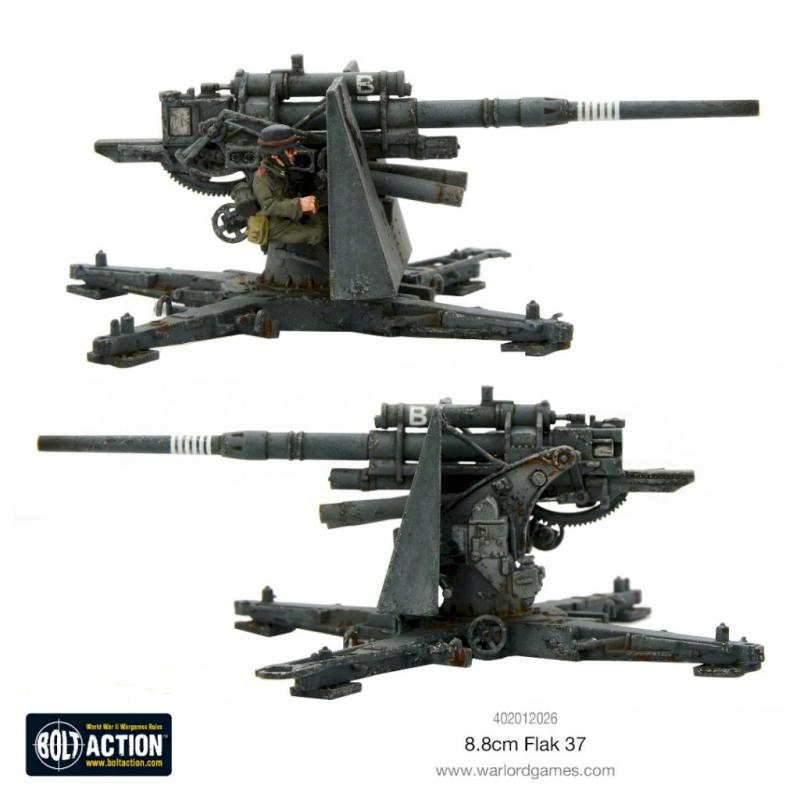 - One 1/56 scale hard plastic WWII 8.8cm Flak 37 dual purpose AA/AT gun