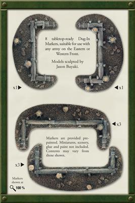 8 tabletop-ready Dug-In Markers, suitable for use with any army on the Eastern or Western Front. Markers are provided prepainted. Miniatures, scenery, glue and paint not included.
