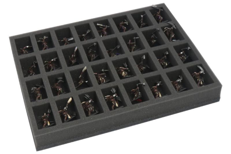 Furthermore, we give you the option to purchase foam trays with only 6mm thick bases to facilitate you completing a set of foam trays for your old case for miniatures on different base sizes.