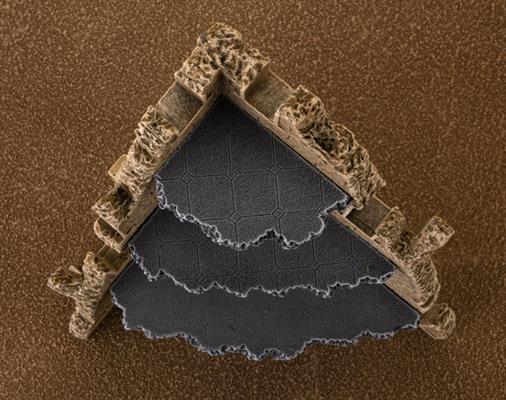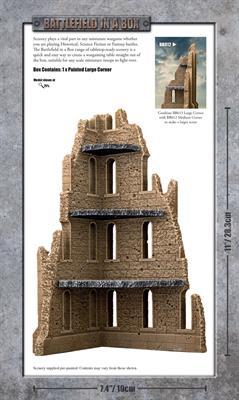 The Gothic Battlefields Corner Ruin towers a full 12 inches above the battlefield. The massive structure is four stories tall, providing a strategic vantage point for any commander able to control it. Beyond the thick stone walls, crumbling floors allow your forces to battle their way to the top of this imposing ruin.