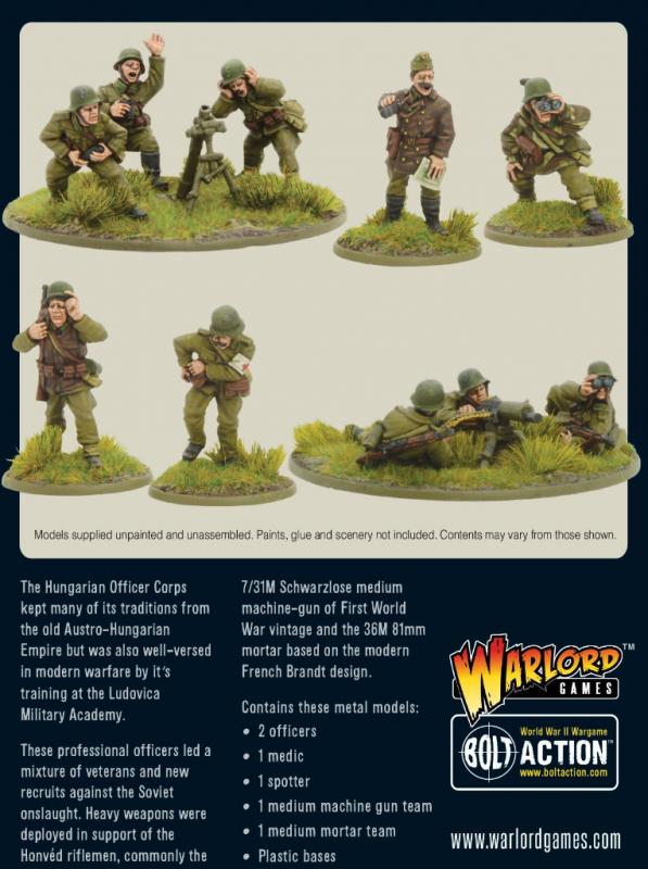 Available in this neat box set, the Hungarian Army Support Group – grab yourself the new Hungarian HQ, Medium Machine Gun and Medium Mortar!