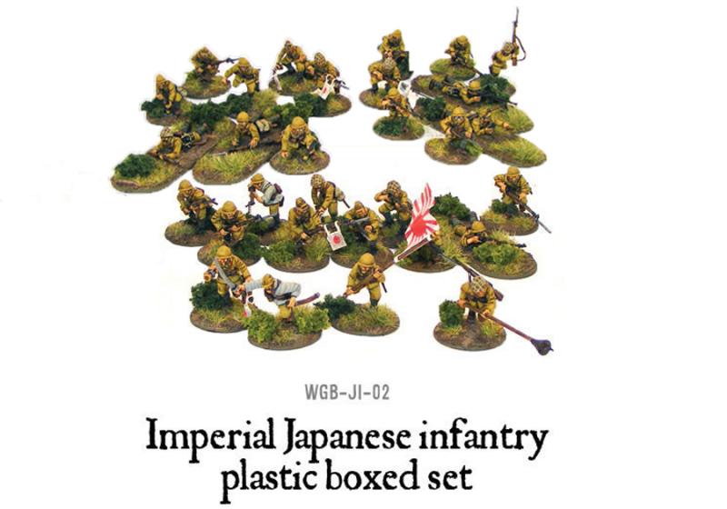 This plastic box set contains enough parts to make 30 plastic Japanese infantry armed with: