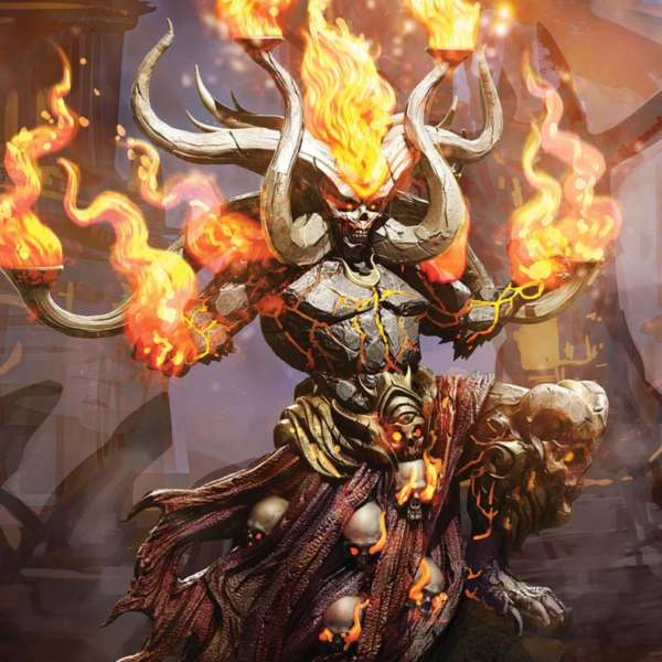 Inferno’s mere touch is a torment, leaving heroes on both sides weakened and burned, their flesh scorched by his relentless, seething heat. Its presence ignites an all-consuming fear as he dances with wild abandon, consuming everything in its path. This fire elemental embodies the unrelenting fury of a raging wildfire, and heroes and gods alike are left to contend with his unquenchable and blistering wrath. In his wake, the battlefield is transformed into a smoldering inferno.