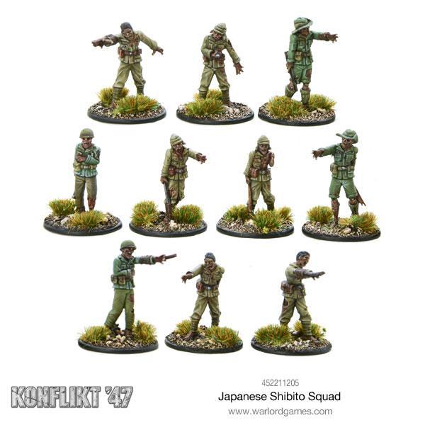 The Shibito Squads were relentless on the battlefields of 1947, immune to fear and programmed to fight until they collapse. US and Commonwealth troops found themselves under constant pressure in the remote battlefields of the Pacific Theatre. Without the need for food, water or even ammunition, the reanimated soldiers (note – not Zombies!) could range far behind enemy lines, sowing terror wherever they appear.
