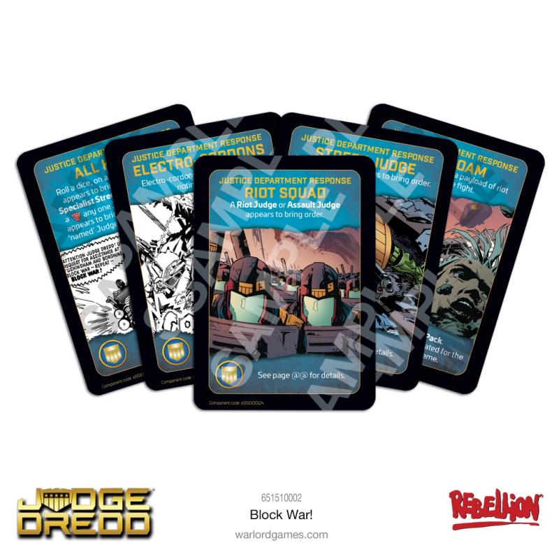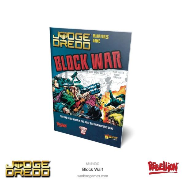 Each player builds their own block with unique characteristics, gathers their residents together, and then unleashes them on the self-satisfied citizens of a neighbouring block – who have had everything their own way for far too long! Included are new rules for use in the Judge Dredd Miniatures Game; new characters and units, new Armoury cards to add to your deck, and a brand-new Block War deck that brings the sheer violence and chaos of a block war to the tabletop – along with a lot of Judges!