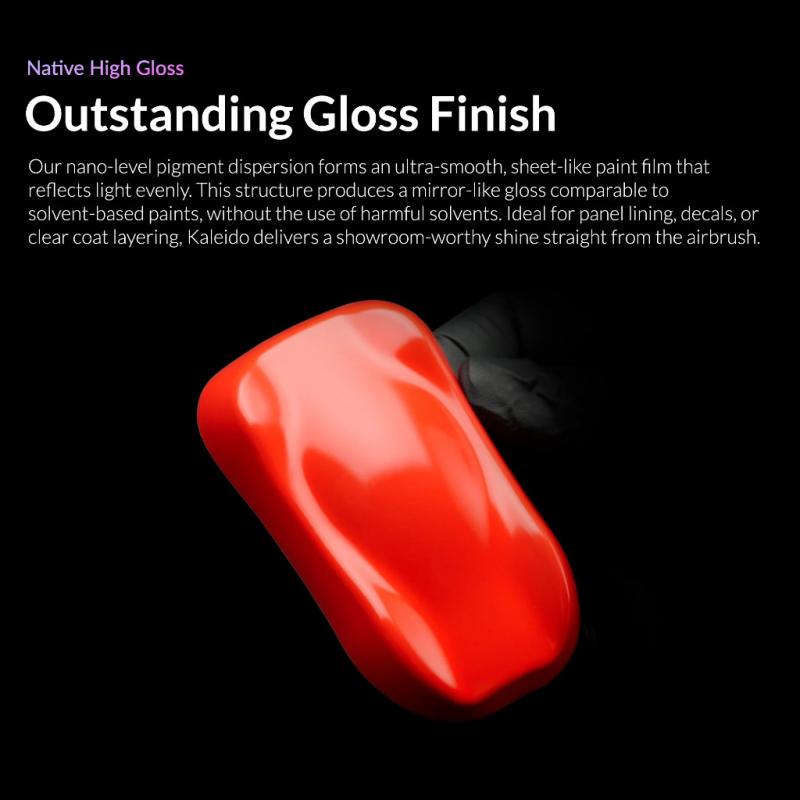 Kaleido Colorworks RapidAir™ Series is a premium water-based acrylic paint designed for smooth, high-performance spraying. Made with an eco-friendly, non-toxic, and solvent-free formula, it’s factory-pre-thinned for direct use or easy dilution. Powered by RapidAir™ Technology, it addresses common water-based paint issues, such as beading, uneven coverage, and sagging, by applying in a smooth, sheet-like layer. This advanced formula delivers strong adhesion, scratch resistance, durability, and a glossy finish similar to solvent-based paints. No primer needed—works on ABS, PE, PC, resin, glass, fabric, metal, and more. Perfect for model painting, crafts, DIY, and professional use.