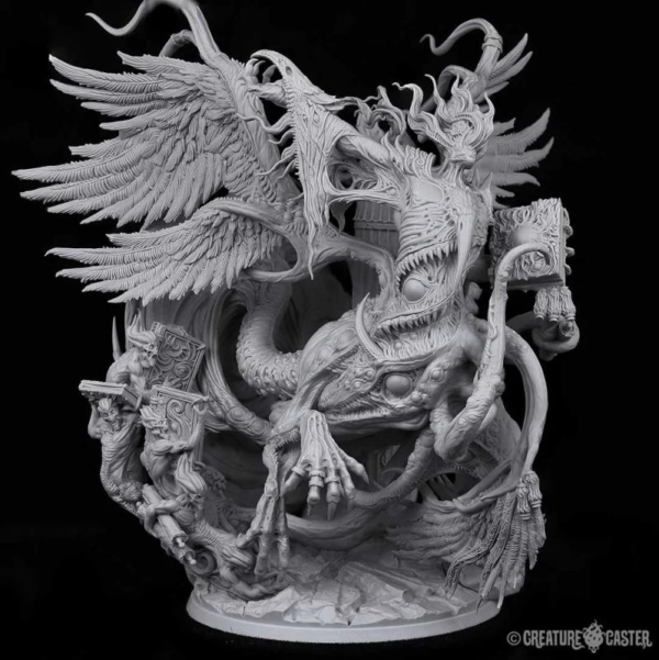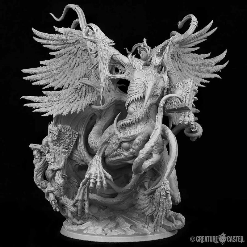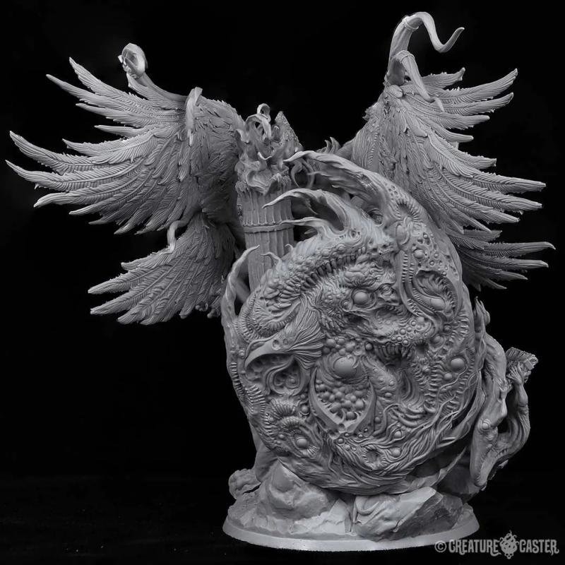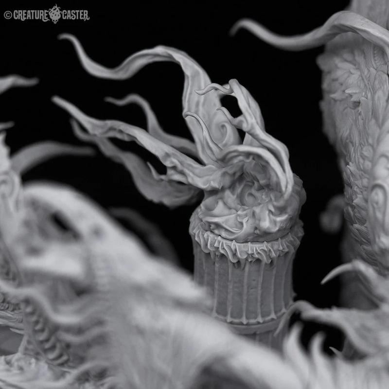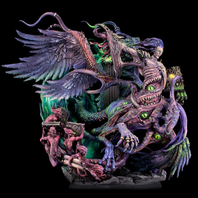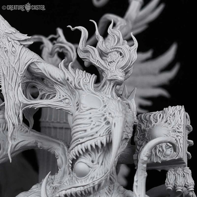 When enough energy is harvested, the King of Malifica rapidly evolves. His followers will often gaze in awe as light begins to leak from his primitive form – a kaleidoscope of blindingly bright colors that did not previously exist within their visual spectrum. What emerges from this cocoon of energy is not the beatific god that they expected. Instead, a Resplendent King of Malifica – in his full demonic glory – bursts forth and falls upon his deluded worshippers in a tide of magical slaughter.