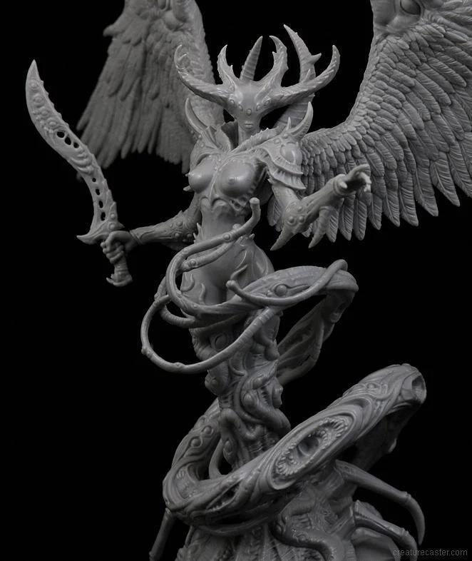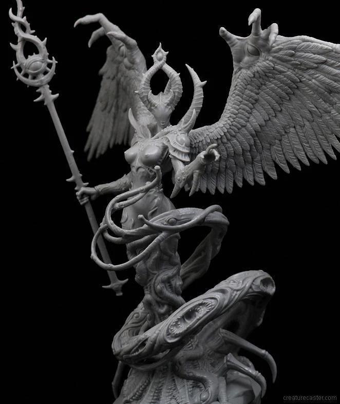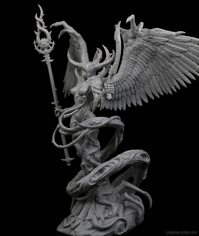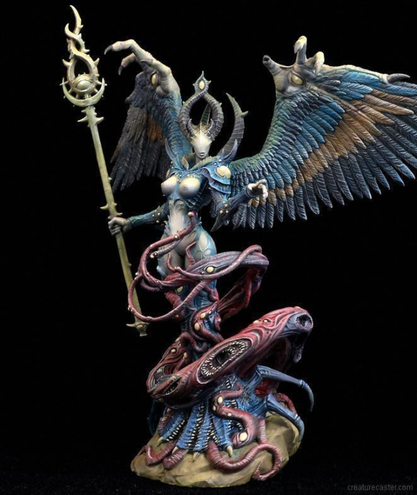 Each of her myriad of eyes stares out at a slightly different version of future events. Some see millennia ahead, and others just a few moments forward in time. Only the most prodigious of intellects is able to make sense of the conflicting and disordered imagery. The Lady of Arcana will often share her visions with others, wrapping them in her pinioned wings and watching as they are driven mad.