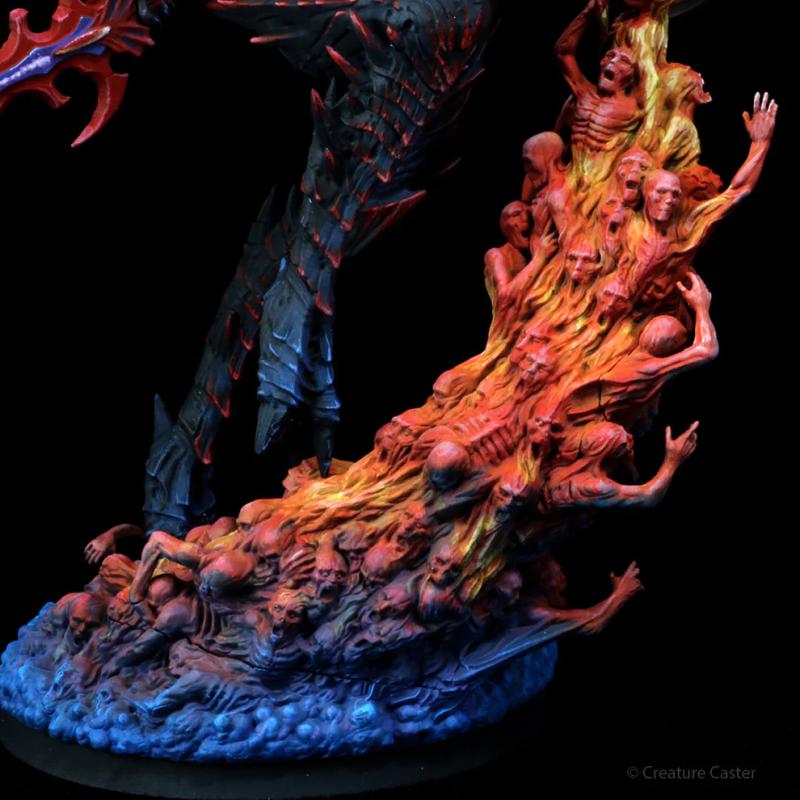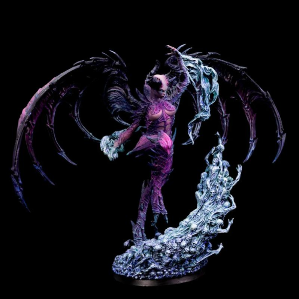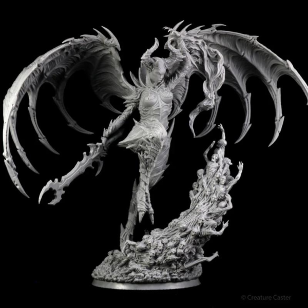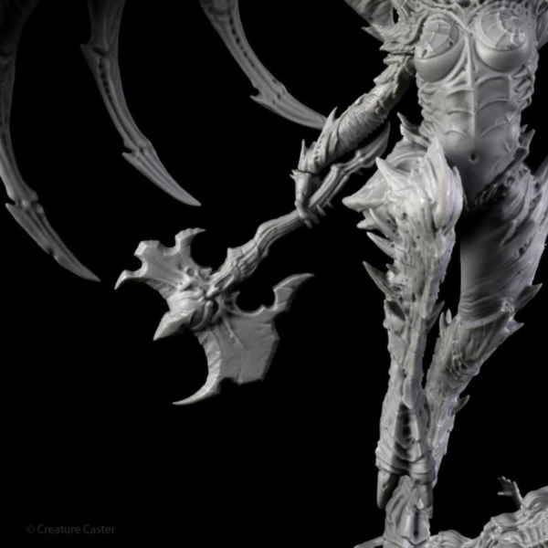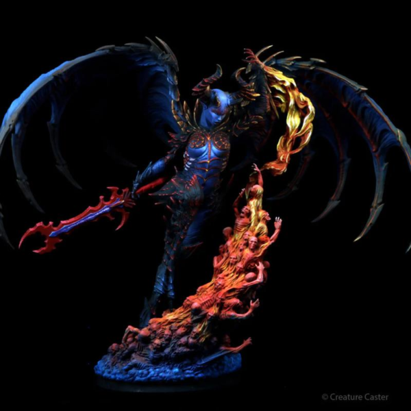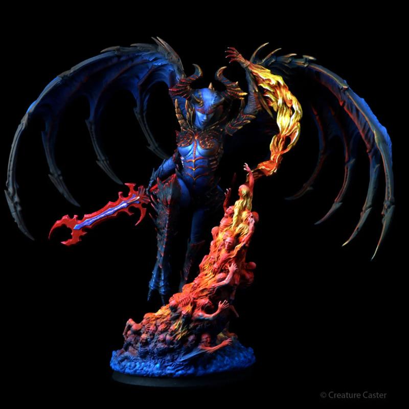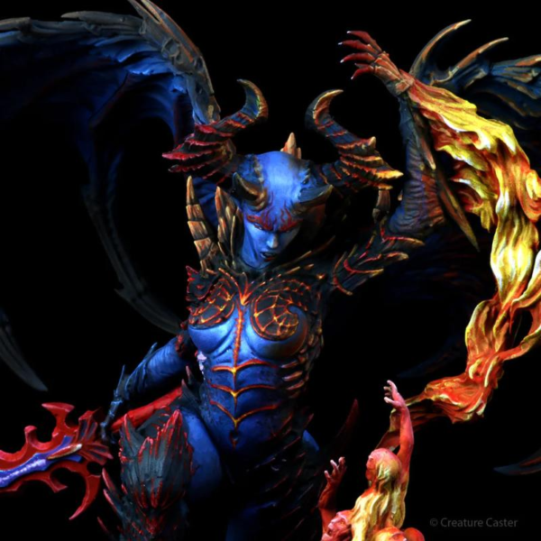 The Lady of Chaos rises on the backs of tortured souls. The second in our Discord line of demons, it is whispered that when the Lord of Malice was birthed into creation, he was not alone. He had a twin sister, just as cruel and malevolent as him. While they fervently deny any familial bond, it is said that wherever they travel in the multiverse, they can feel their connection to one another. All servants of Discord seek the destruction and end of all things. Any bond is completely antithetical to the demons of Discord who seek complete freedom and independence in their nihilistic pursuits. To be so bound to another is a hideous fate for such a demon, and whether the tales are true or false, they must surely seek the destruction of one another. For, even the rumor of such a connection binds them in its own way and draws the ire and scorn from other Discordants.