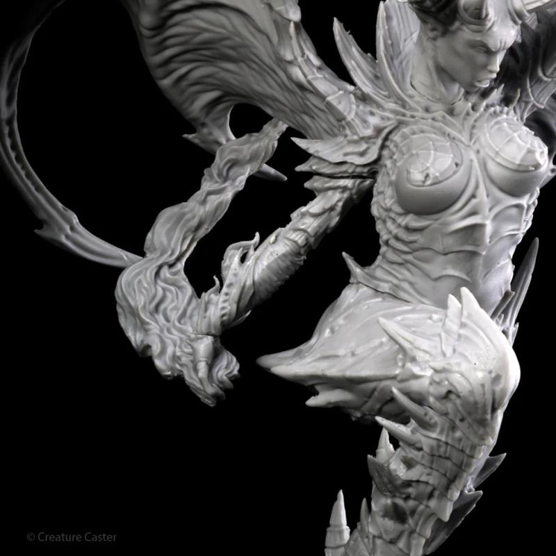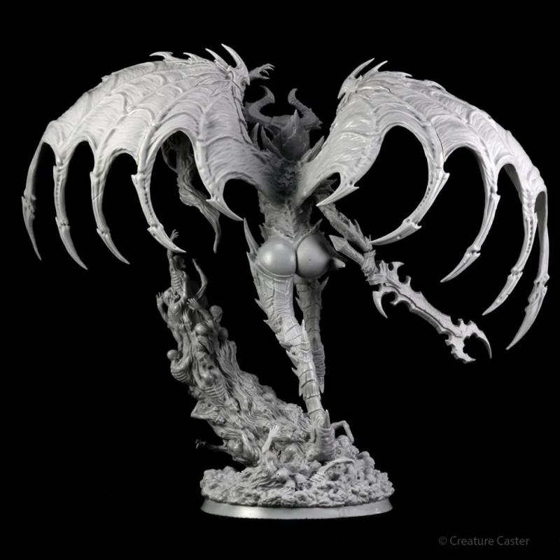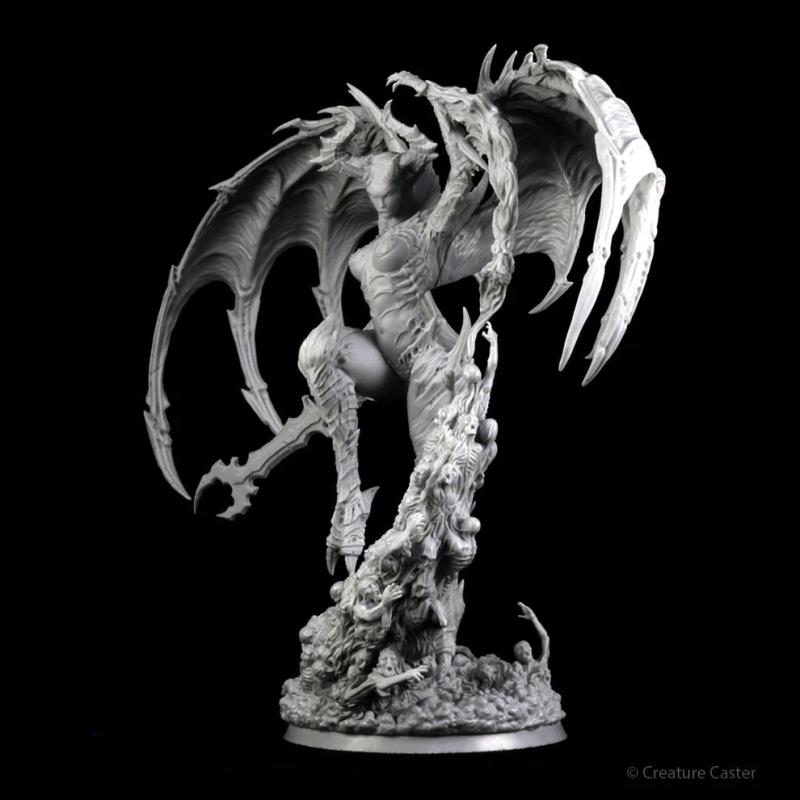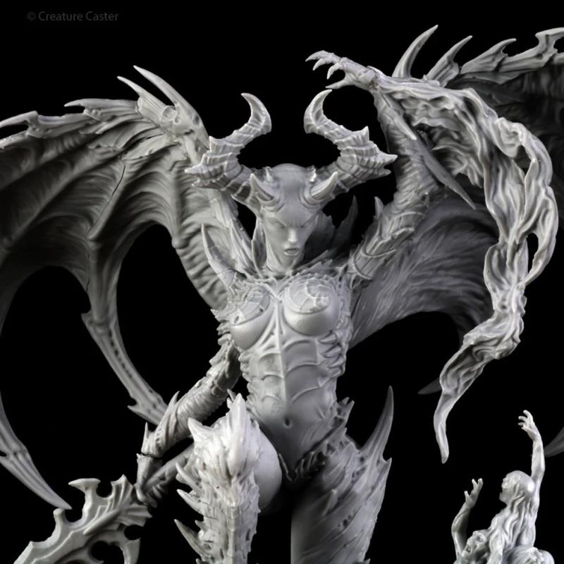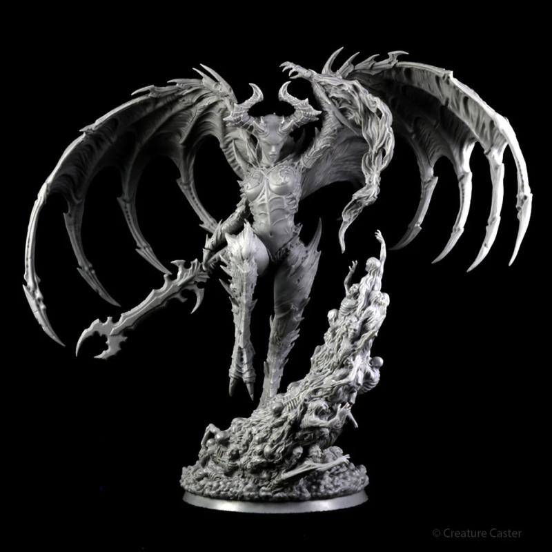 The Lady of Chaos rises on the backs of tortured souls. The second in our Discord line of demons, it is whispered that when the Lord of Malice was birthed into creation, he was not alone. He had a twin sister, just as cruel and malevolent as him. While they fervently deny any familial bond, it is said that wherever they travel in the multiverse, they can feel their connection to one another. All servants of Discord seek the destruction and end of all things. Any bond is completely antithetical to the demons of Discord who seek complete freedom and independence in their nihilistic pursuits. To be so bound to another is a hideous fate for such a demon, and whether the tales are true or false, they must surely seek the destruction of one another. For, even the rumor of such a connection binds them in its own way and draws the ire and scorn from other Discordants.