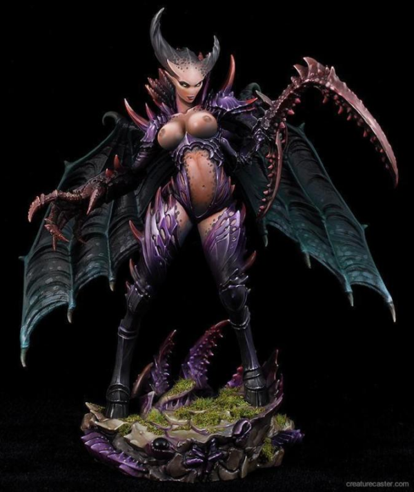 The Lady of Corruption is possessed with such a strong desire to subvert the natural world that it flows from her in invisible waves. Everything in her proximity is subject to a tainted force, that is both enticing and abhorrent. The ground upon which she walks is warped by her presence, contorting to her will, and becoming a scar on the landscape. Mortals often find themselves beguiled by her strange and wicked beauty. Seduced with dreams of forbidden pleasure, they stand dumbstruck as her gentle caress twists them into horrific mockeries of their former selves. Their distorted and pain wracked forms are most pleasing to the Lady of Corruption. Those who were once pure of heart sink into the foulest depravity, while she smiles at them indulgently. They destroy all that they once held dear, while her mocking laughter echoes in what is left of their minds.