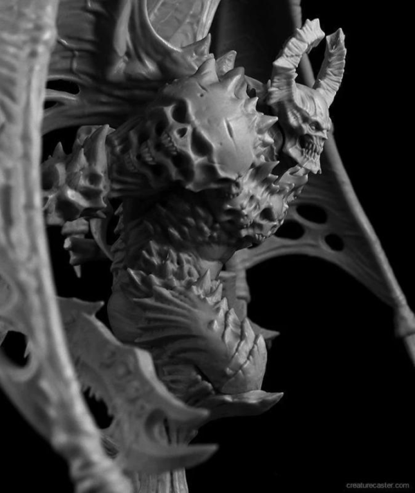 The Lord of Slaughter is a terrifying, psychopathic beast that hunts others for no purpose other than the thrill of killing. He embodies one of the most sinister aspects of war: that of unending bloodthirst. Unlike most demonic lords he shuns the concepts of holding power, territory, or influence. Truth be told, he does not even have interest in martial skill or testing his metal against a worthy foe. Instead, he is utterly devoted to the act of killing–through any method and at any cost. For him, true satisfaction is only obtained as his blades tear into the flesh of his foes, when he can taste their arterial spray upon his lips.