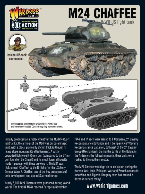 Conceived to replace the M3/M5 Stuart light tanks, the M24 Chaffee fought in US service during the later years of WWII and on into the Korean War. The Chaffee also served with British and Russian forces during the Second World War. Reliable, armed with a 75mm gun and with a good off-road performance, the M24 was popular with it’s crews.
