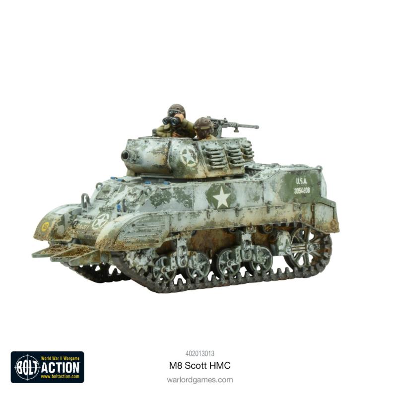 Based on the ubiquitous M5 Stuart light tank hull, the M8 75mm Howitzer Motor Carriage (HMC) provided much needed mobile artillery support to US assault forces. Replacing the M5 Stuart turret with a more spacious open-topped turret to house a short-barrelled M2 (and later the M3) 75mm howitzer and a mix of smoke and high explosive ammunition. A pintle-mounted .50 Cal heavy machine gun provided additional defensive firepower.