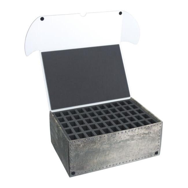 The presented product is a Full-size Mega Box with a set of 5 foam trays, for storing and carrying 275 small miniatures on 20mm or 25mm bases.