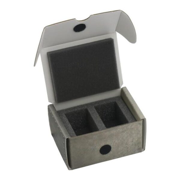 - 1 x foam tray with 2 compartments for miniatures, each 52mm x 32mm x 32mm;