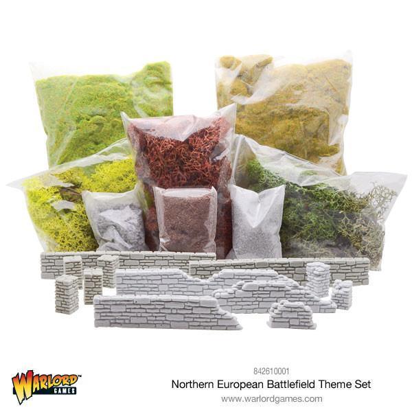 The Northern European Battlefield Theme Set contains enough material to cover approximately a 2′ x 2′ board: