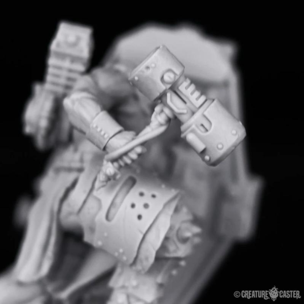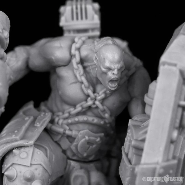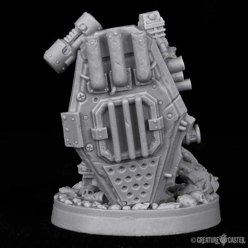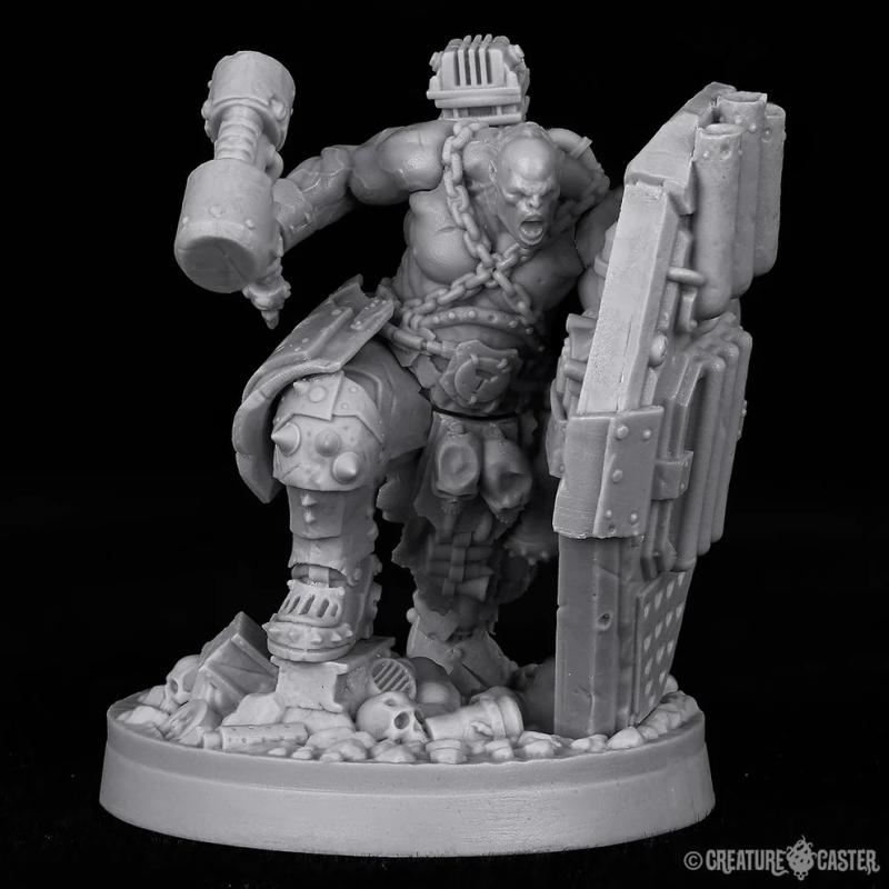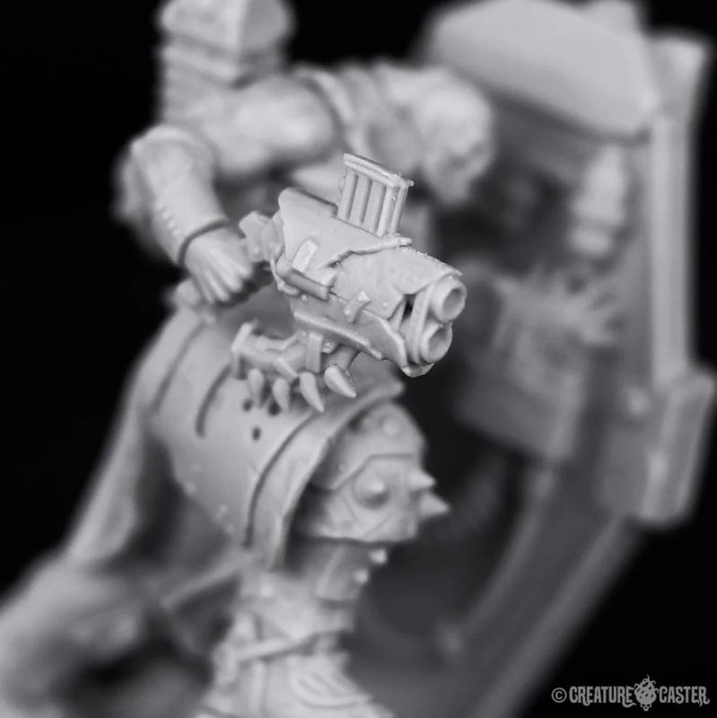 Forge Guards are selected from their broods for one purpose: to protect their Forge Lord in battle. They are uniquely equipped with massive repulsor shields which are both protection and weaponry in one. The power core of the repulsor shield provides an anti-grav effect; reducing its weight, and repelling projectiles. The energy that the core produces is pressurized and contained, and can be released through the front of the shield in a wave of fire. Like all orcs, the Forge Guards have little training. Instead, they rely upon the genetic memory that is imprinted upon them through their weaponry.