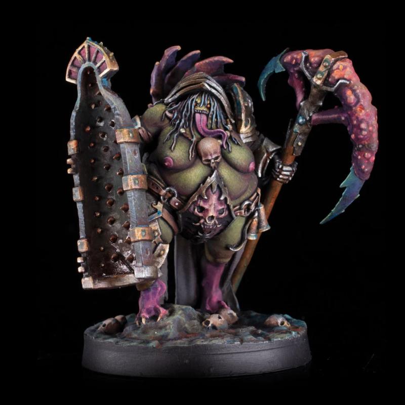 The Paladins are protected by massive shields formed from the doors of wicked iron maidens. Such doors are blessed with the screams of countless victims, and render the Paladin nearly impervious to magical attacks. Their brutal scythes trail dark energies as they slice through enemies. These warrior priests are an inspiration to their allies, and a terror upon their foes