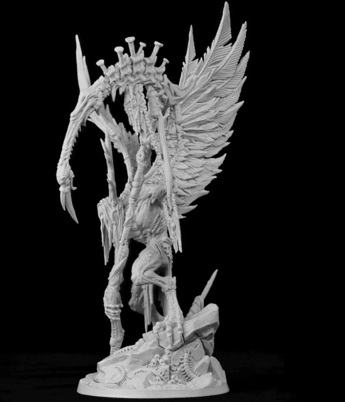Plague Angels are an anomaly within the forces of Ruin. They are leaders, granted far more power than that of a simple Atriarch but far less than that of a Lord or Lady of Ruin. Thought it would be foolish for a more powerful creature to attempt to control them – as they are fearsome foes indeed. Their wings shudder in the wind, releasing dandruff of sickness and death – even as they cross the battlefield, they leave a miasma of palpable virulence. Their flesh is poison, and the blood that runs through their veins contains some of the most lethal pathogens known to mortals, and the creatures known as Yhtarii, alike – even being splattered with it after landing a successful blow can mean death for the victor later on
