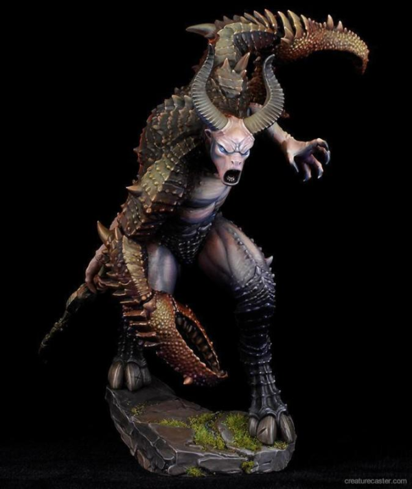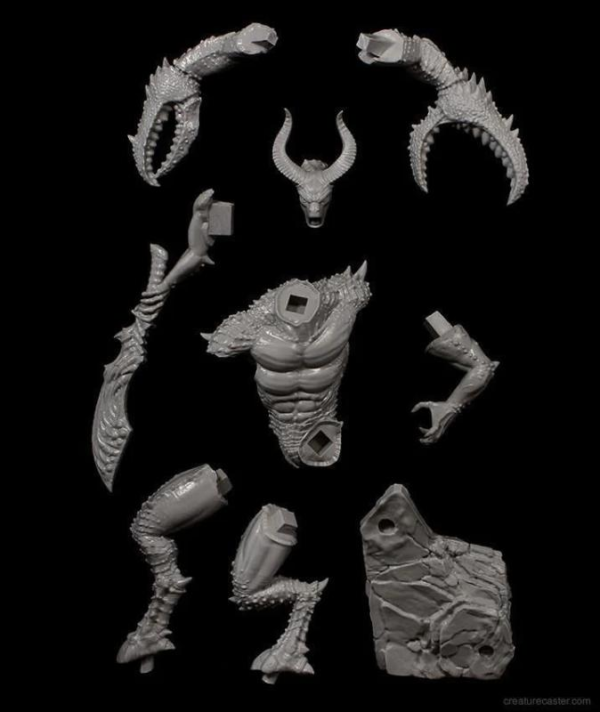Pincer Demon’s four arms are legitimized with a functional anatomy and musculature that is as closely grounded in reality as we could achieve. He has a very dynamic and asymmetrical pose, which adds energy and agility to his complicated physique.