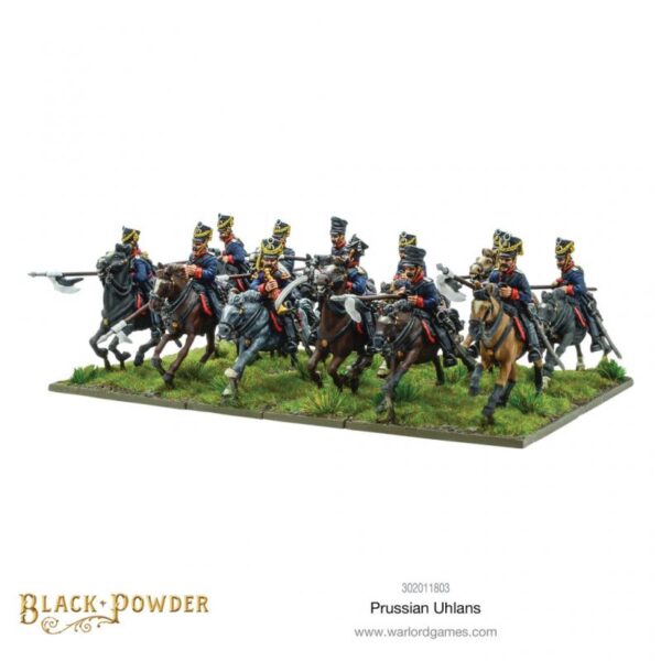 The Uhlans, or lancers, of the Prussian army fulfilled the role of both skirmishing light cavalry and line shock troops alongside the dragoon and cuirassier units. Equipped with a lethal 9-foot lance, they were an imposing sight. It was the Uhlans who saved Marshall Blücher when unhorsed at Ligny.