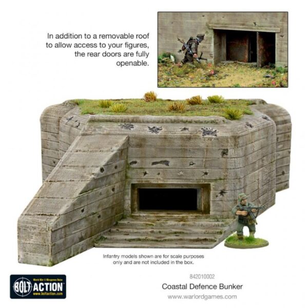 This plastic kit contains one hard plastic R612/R680-style bunker. In addition to a removable roof to allow access to your figures, the rear doors are fully openable allowing defenders to sally forth or assaulting troops to attempt to crack open this heavy defence!