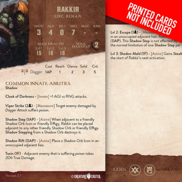 Piper uses his trickster magic, weaving illusion and bewildering his foes to his great advantage. It is said that he was taught these arts by Grul herself… the only elf that Grul has ever welcomed to her side