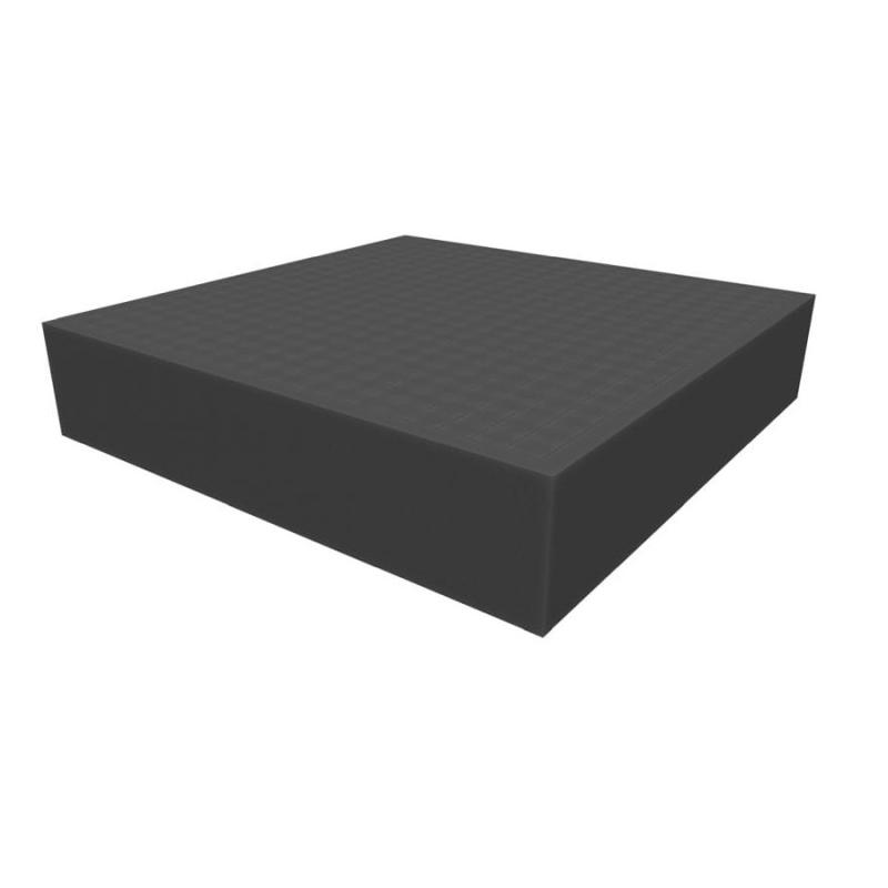 The presented product is a 60mm deep raster foam insert for board game boxes. The foam is perforated into 14mmx14mmx60mm cuboids, which allows for customisation the storage space for gaming accessories and miniatures in the original game box.