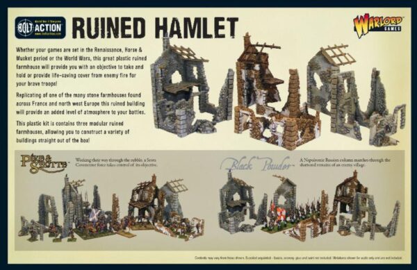 This boxed set is based on a ruined farmhouse is extremely versatile in that it can be built in several ways and is also ideal for use in many periods – from Napoleonics to WWII.
