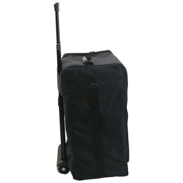 The bag is equipped with a trolley, which makes it easy to carry around. The bag can also be removed from the trolley and worn on an adjustable shoulder strap.